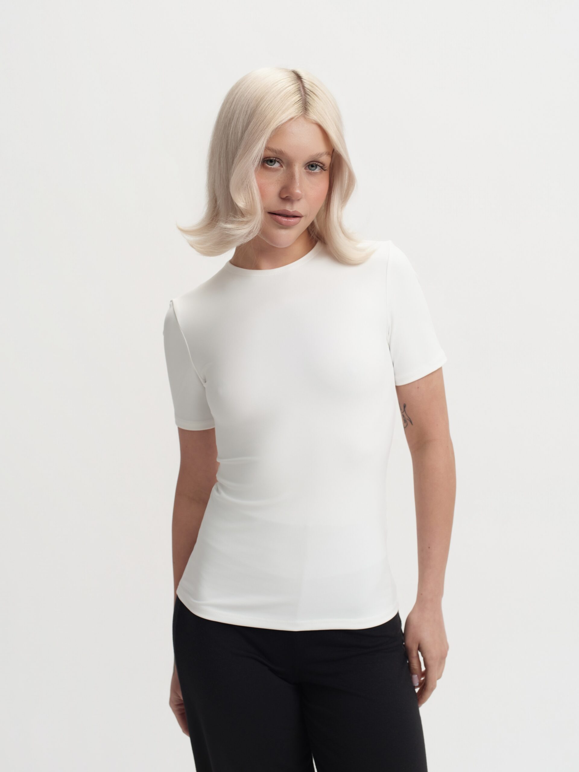Gładkie wykończenie i precyzyjny krój sprawiają, że top prezentuje się niezwykle elegancko – zarówno noszony samodzielnie, jak i jako warstwa pod inne elementy.