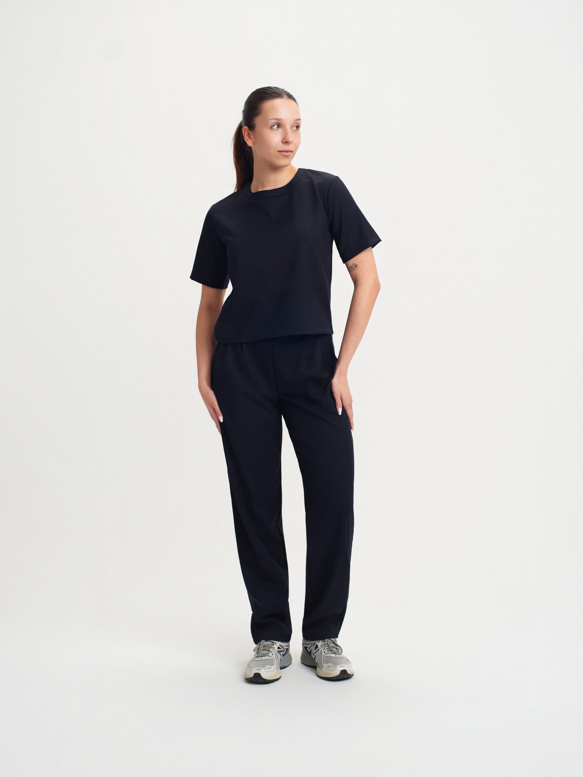 Spodnie z wyższym stanem i prostą nogawką łączą wygodę z klasycznym stylem.
